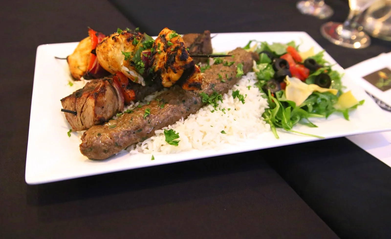 I got to sample a variety of dishes and everything was simply incredible. From the vibrant colored Fattoush Salad, to the perfectly seasoned Mix Grill Platter, lamb chops and flavor-packed Chicken Shawarma wrap... it was all very coveted and I couldn't get enough.